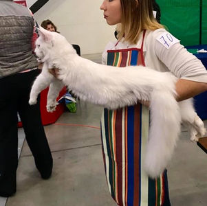 Оливия привезена из Голландского питомника Timaracoon. Имеет хорошую генетику по белому цвету 100% баер тест. Плюс мы получили кошку в прекрасном размере растянутого формата на высоких конечностях, длинный хвост, и большие ушки. Оливия обладает самым диким взглядом из наших кошек. Благодарю Тини за нашу прекрасную девочку.
